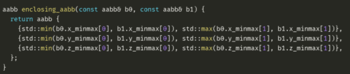 presents practical techniques for working with axis-aligned bounding boxes including slab-based min/max representation for simpler merging operations demonstrates an approach to extract individual vertex coordinates from AABB using vertex index without floating-point math explains efficient ray-AABB intersection test