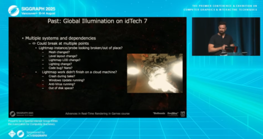 presentation detailing the path-traced global illumination system in idTech8 discusses optimizations for dynamic lighting, material complexity, and scene complexity