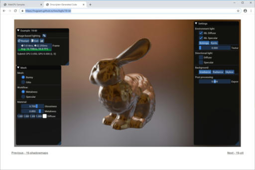 documents the reimplementation of bgfx's WebGPU backend using Tint for SPIR-V to WGSL shader translation critiques WebGPU's design choices (versioning chaos, texture format tiers, structure chaining) while praising simplified buffer/texture management discusses Dawn/Tint bugs encountered and provides build instructions for native WebGPU development