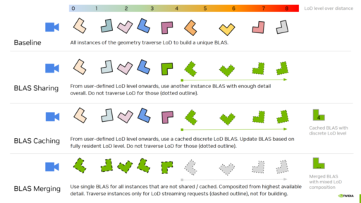 presents techniques for reducing BLAS builds for cluster-based continuous level of detail systems discusses BLAS Sharing, Caching, and Merging releases the implementation of the techniques with a detailed discussion of the implementation choices additionally presents performance and memory profiling results