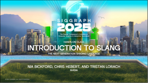 announces the availability of recordings and materials from Slang's SIGGRAPH 2025 sessions includes hands-on lab materials covering language fundamentals, modules, and automatic differentiation provides access to neural shading course materials as well as a session presenting how developers use the technology