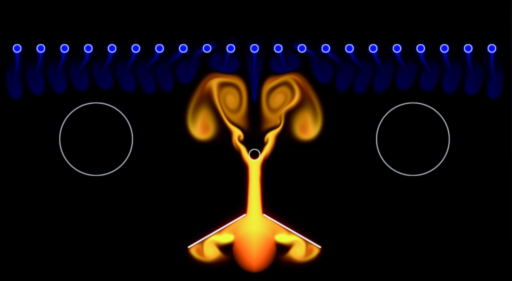 video walkthrough of implementing a fluid dynamics simulation for smoke covers the mathematical foundations and implementation details of smoke simulation covers Navier-Stokes equations as well as dynamic simulation with pressure solving and velocity interpolation