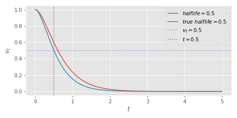 derives mathematical equations for estimating stopping/starting times and distances from critical spring damper character movement systems uses Lambert W function (product logarithm) to solve for stopping times from spring parameters presents methods to fit spring half-life parameters from measured animation data, including "true half-life" definition based on exact halfway-point timing