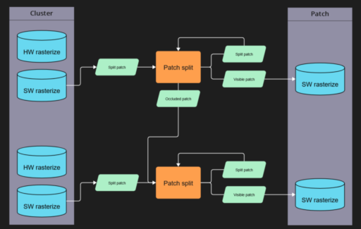 Brian Karis details how Reyes-style displacement mapping tessellation was integrated into Nanite explains the new pipeline stages and how they fit into the existing structure discusses key implementation challenges, including bounding displaced patches for culling, computing texture UV derivatives, and vectorizing scalar-heavy per-patch work across multiple patches per wave