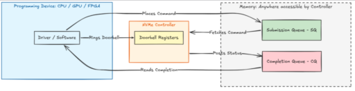 explores making an AMD GPU control an NVMe device directly, bypassing the CPU for I/O submission and data placement into VRAM discussins and presents the kernel-level paths to allow access to the required pages from DMA and GPU shader access documents the cache coherency challenges encountered