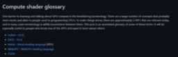 - the article provides an overview of compute shader terminology and how they differ between APIs