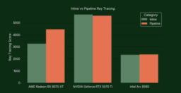 • shows AMD achieves significantly better performance with pipeline ray tracing, while NVIDIA and Intel perform similarly with both approaches